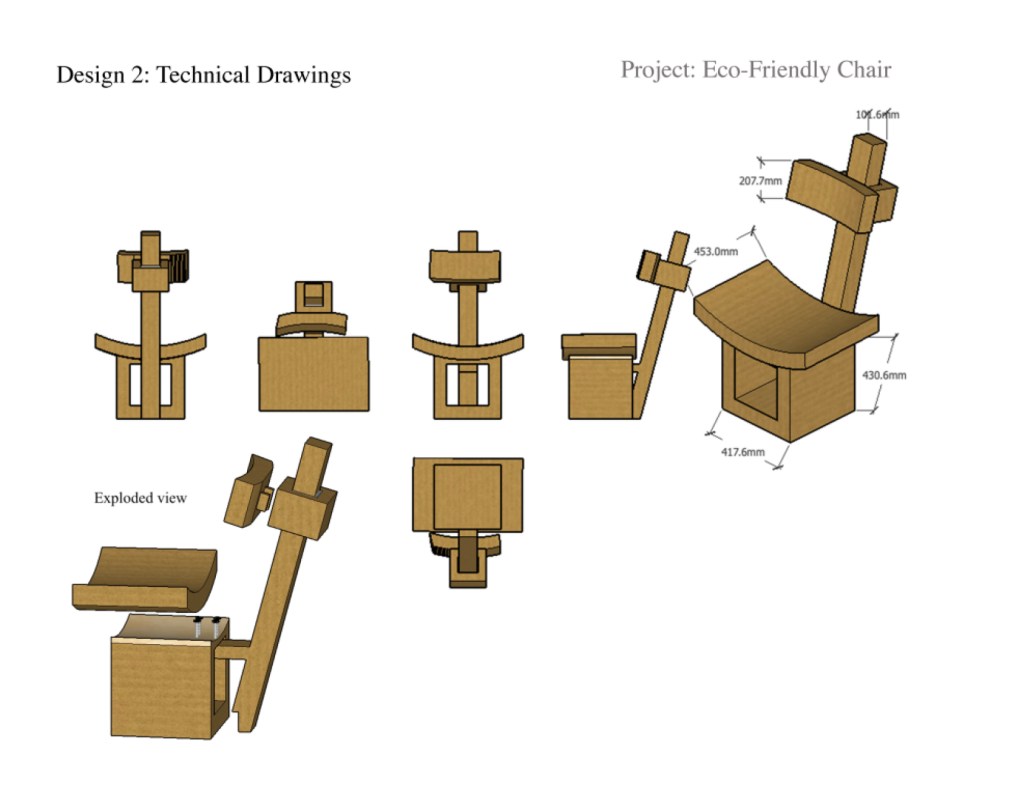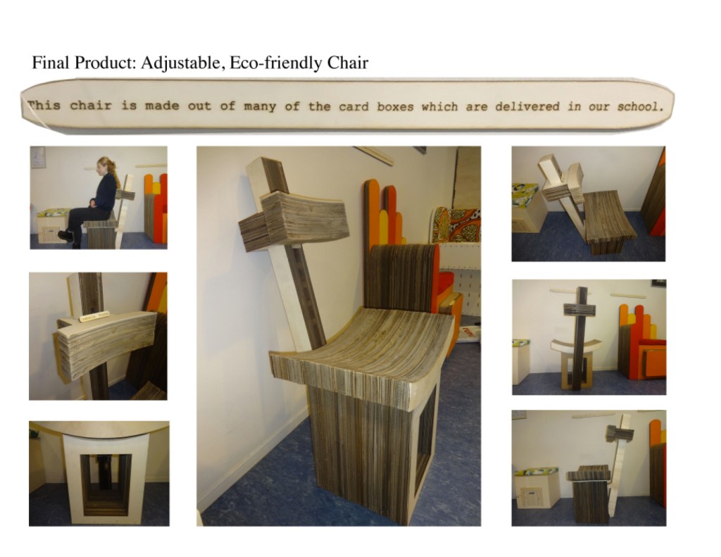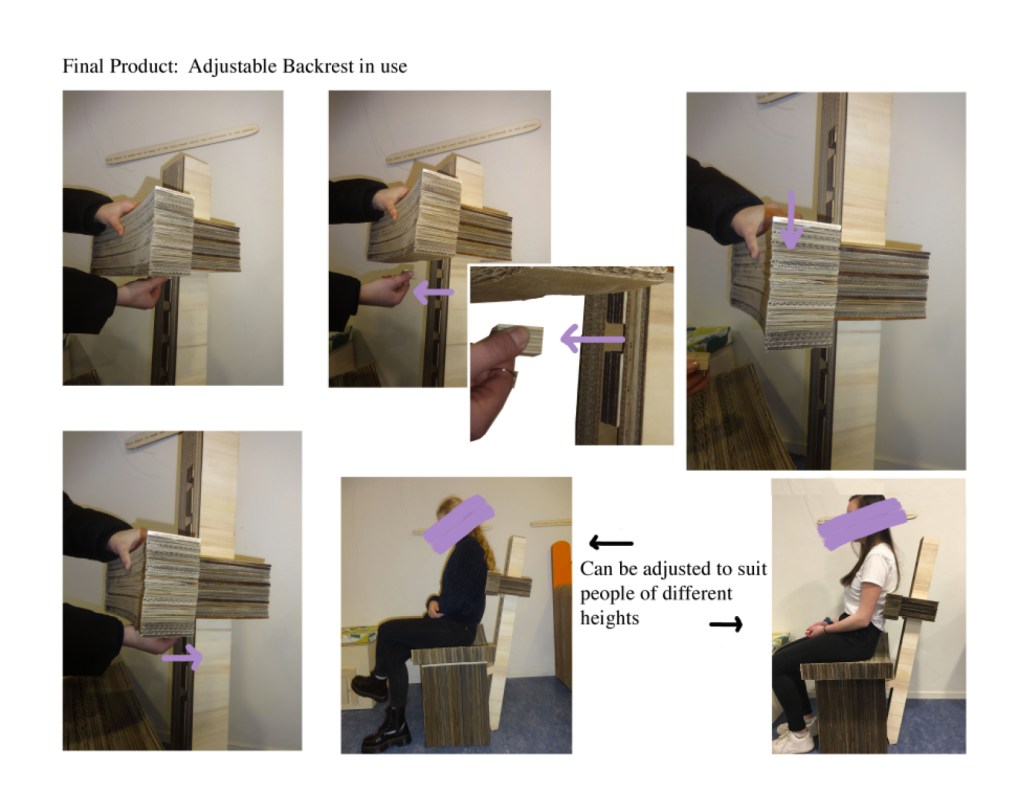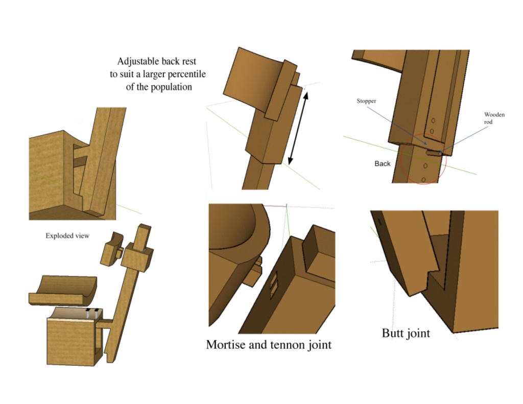 I revisited a project I completed in school (2018), the brief for which was to create an eco friendly piece of furniture. The audience I was designing for were students of an International School, meaning the average height and size of students varied a lot. Therefore, I chose to design an adjustable chair which would accommodate students of all shapes and sizes, while only using recycled materials.