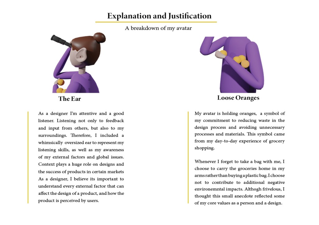 Hyperself: “A Super Designer Character” of myself. I also wrote a short statement of my values and what I hope to achieve as a designer.